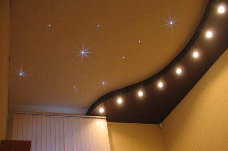 - потолочное покрытие, которое выполняет функцию как основного, так и дополнительного, декоративного источника света;