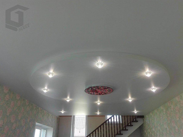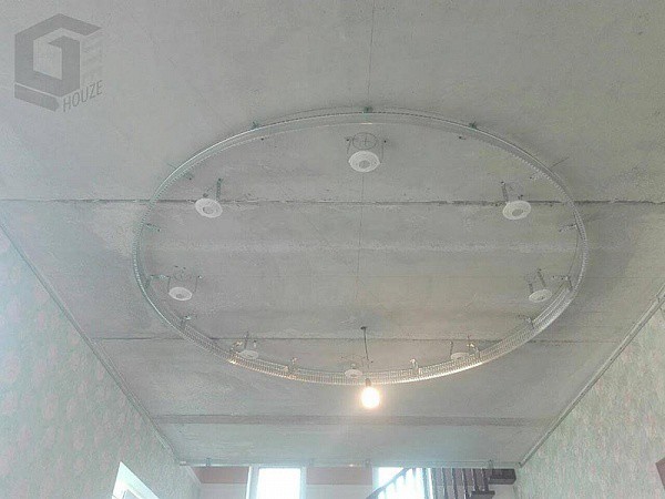 В процессе работ было установлено 6 потолочных светильников в подарок клиенту по акции. Работы проводились с применением строительного пылесоса. Обработка 4 углов. Обводка трубы не осуществлялась.