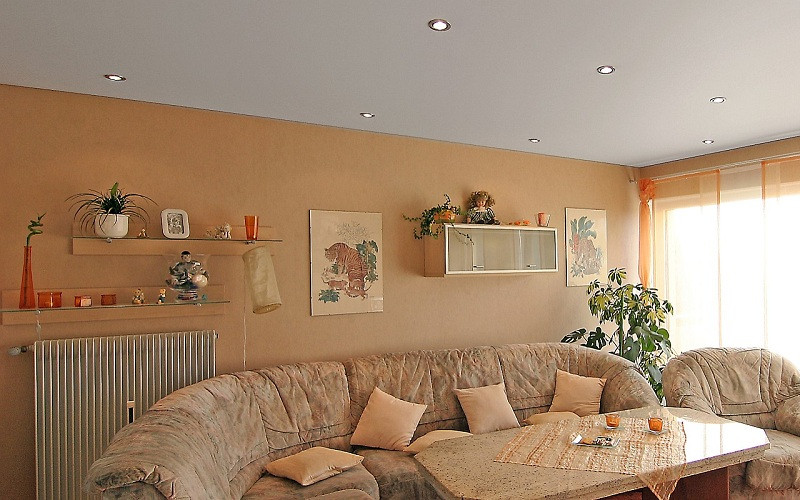 Для монтажа ПВХ-пленки требуется тепловая пушка, поэтому важно сразу определить, допустим ли в конкретном помещении нагрев воздуха до 60 градусов. Также важно помнить, что пленка должна находиться в помещении, где температура не ниже +5 градусов. В целом, других ограничений для натяжного потолка из поливинилхлорида нет.