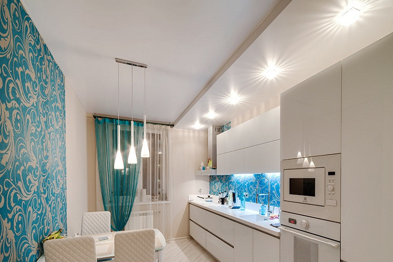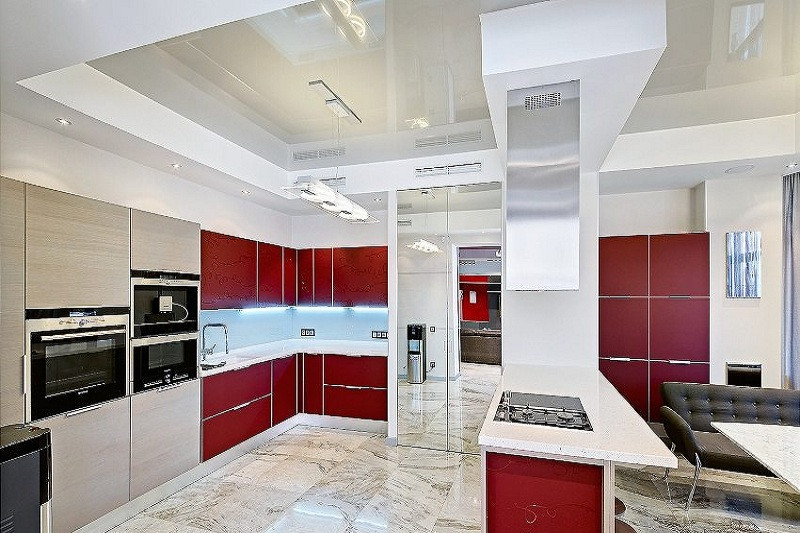 Компания «Потолки-Sale» предлагает натяжной потолок на кухню высокого качества. Мы предлагаем одно- и многоуровневые конструкции различных цветов и форм. Перед покупкой можно бесплатно заказать услугу замера площади потолочного перекрытия.